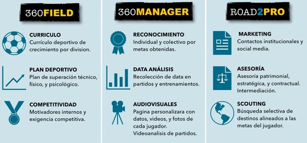Nuestra metodología se fundamenta en tres pilares (programas) de desarrollo deportivo: el pilar individual, el analítico, y el comercial. Estos pilares les permiten acercarse a sus metas deportivas.
